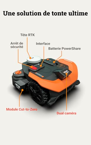 Son système de navigation avancé garantit une tonte régulière et limite les passages inutiles, ce qui améliore à la fois la performance et l’autonomie.